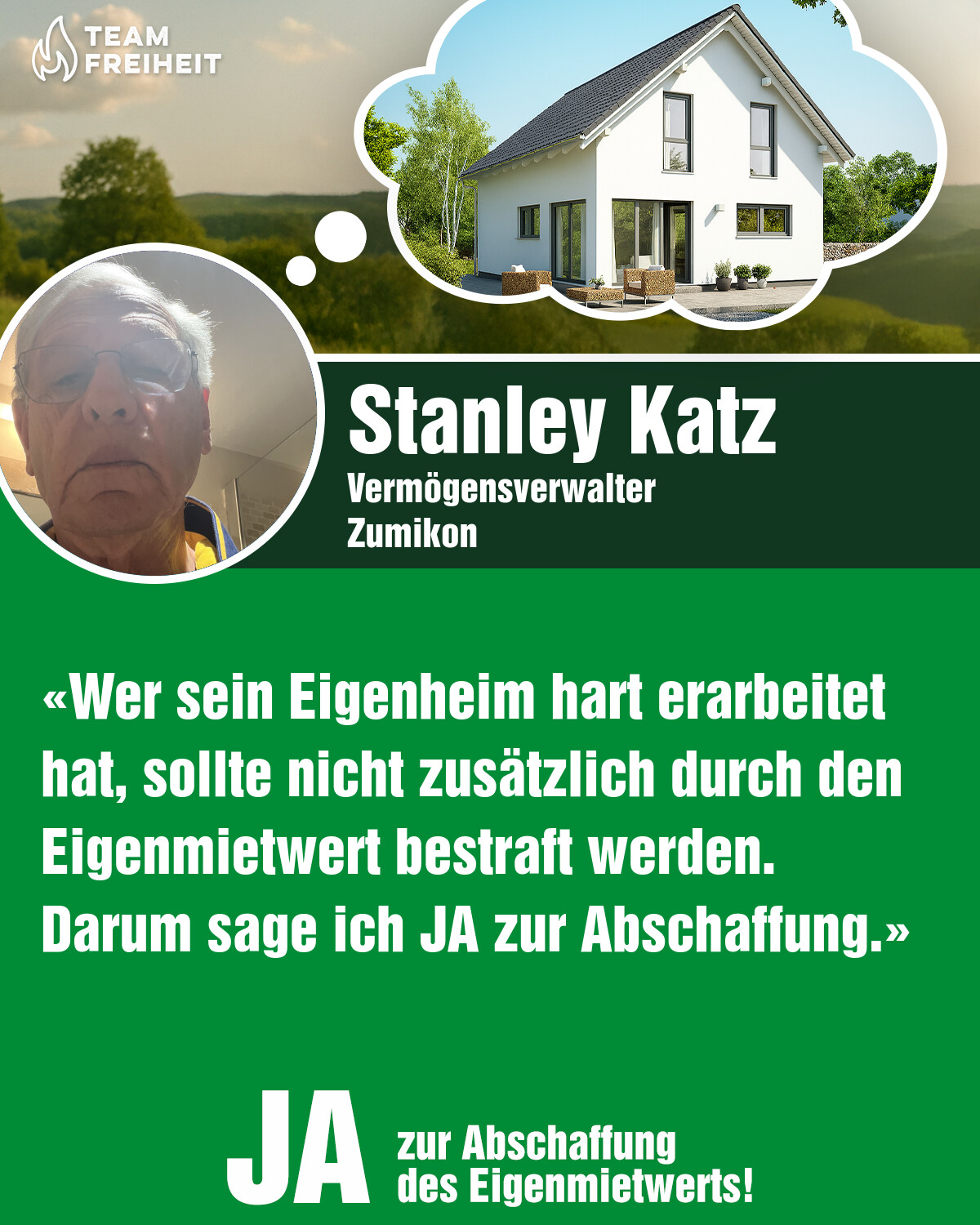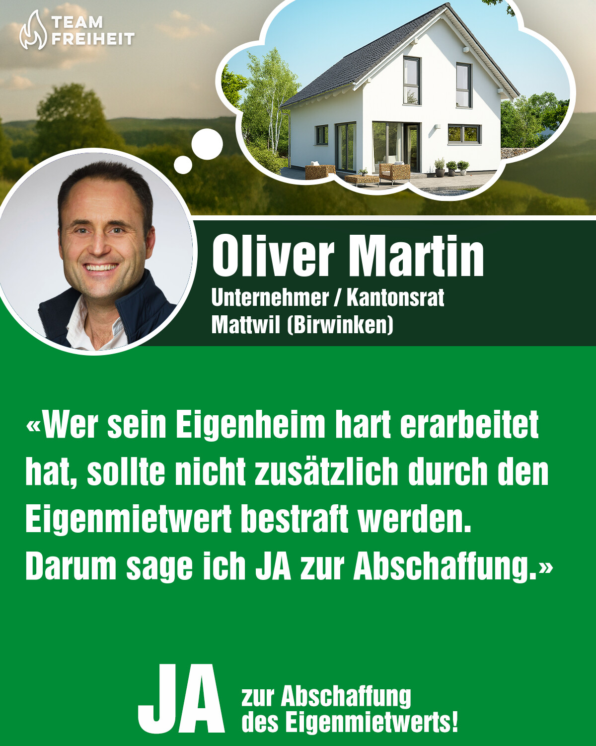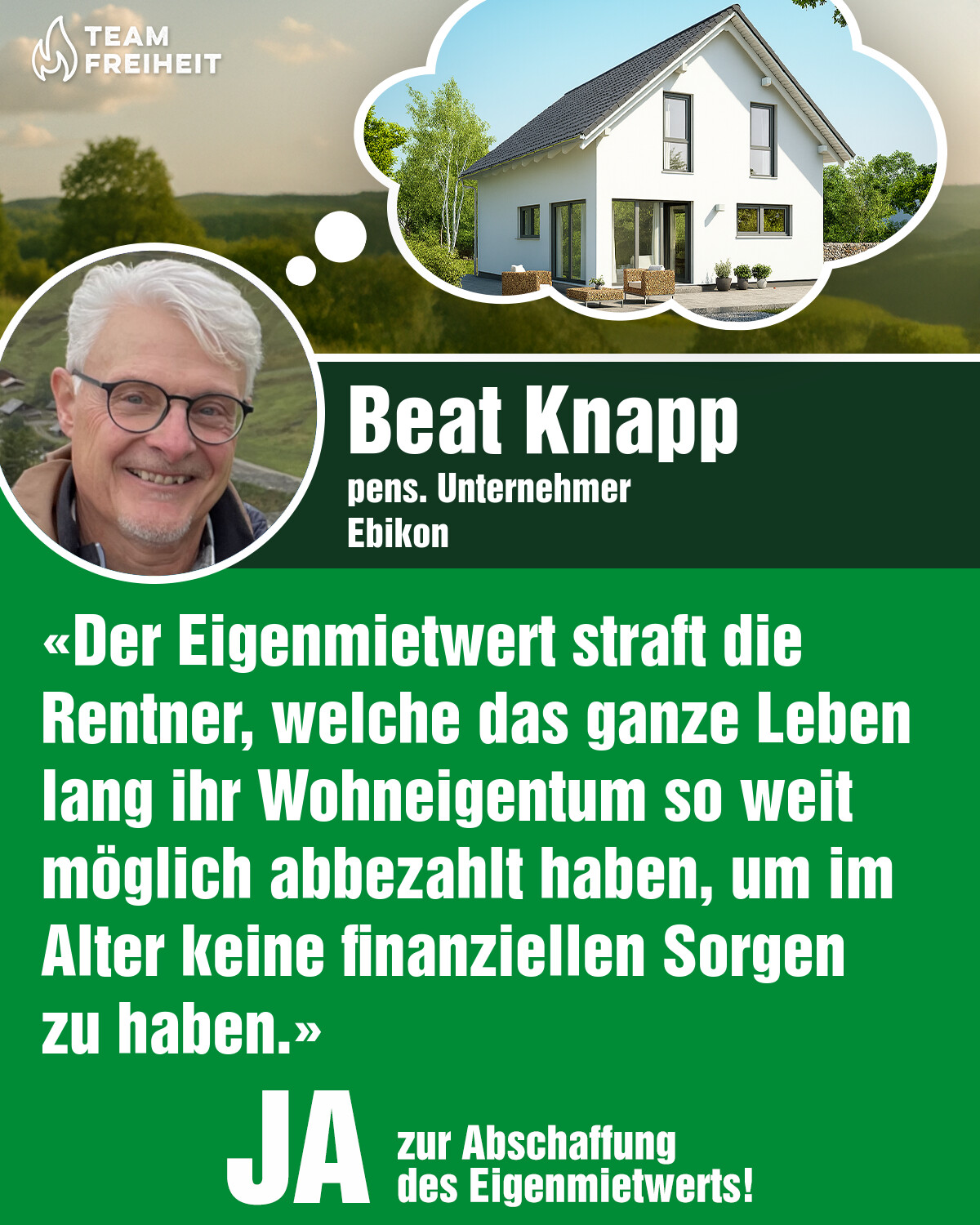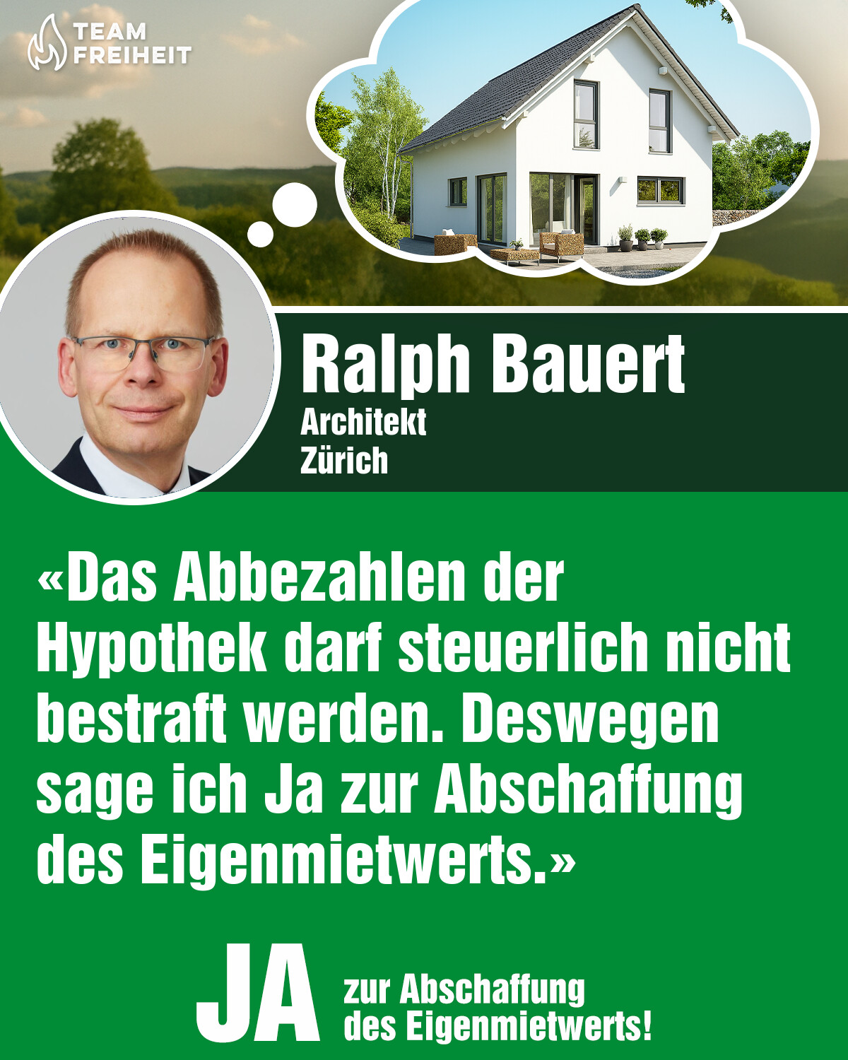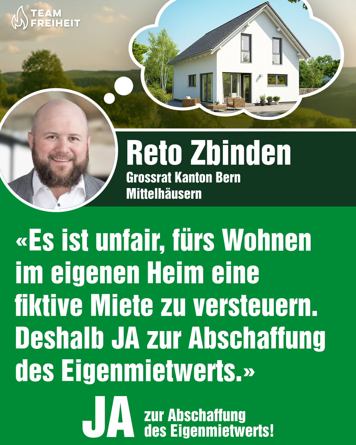 ««Wer sein Eigenheim hart erarbeitet hat, sollte nicht zusätzlich durch den Eigenmietwert bestraft werden. Darum sage ich JA zur Abschaffung.»»