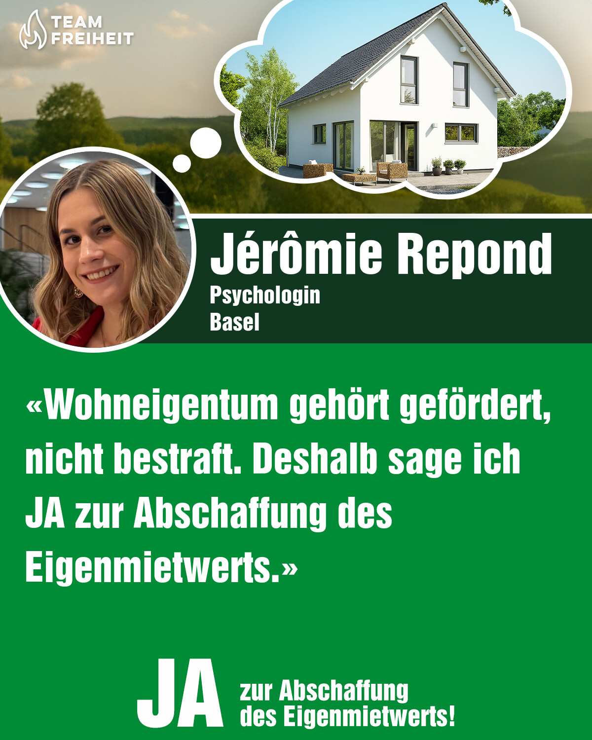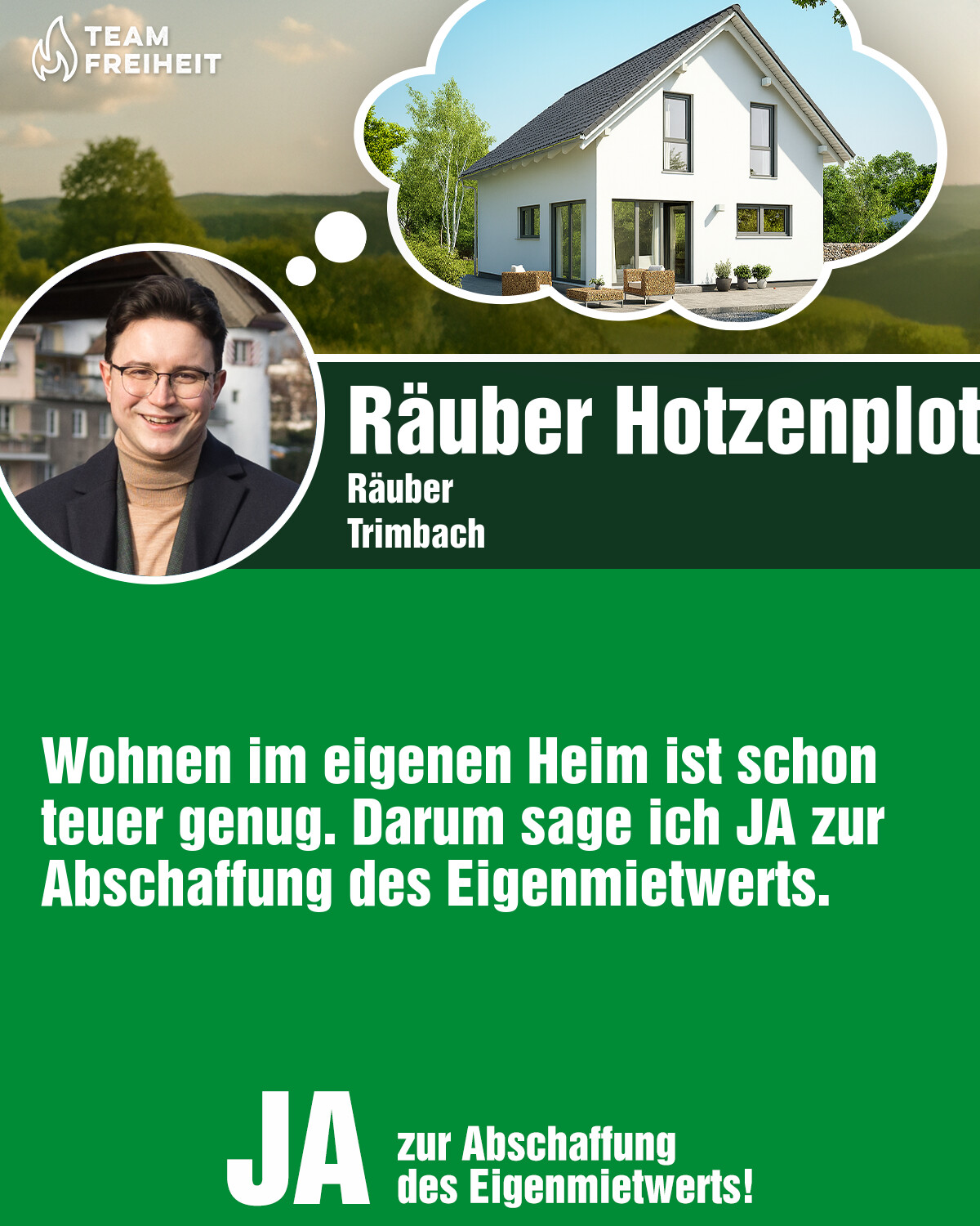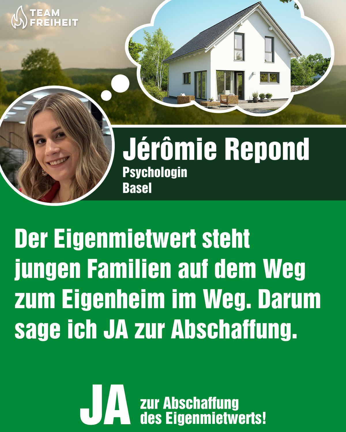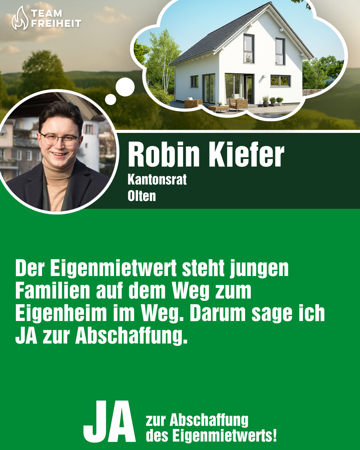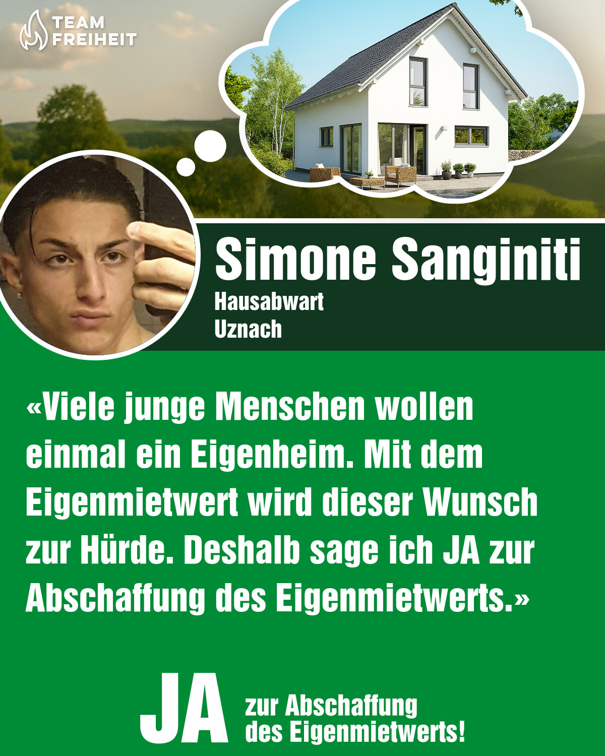 ««Viele junge Menschen wollen einmal ein Eigenheim. Mit dem Eigenmietwert wird dieser Wunsch zur Hürde. Deshalb sage ich JA zur Abschaffung des Eigenmietwerts.»»