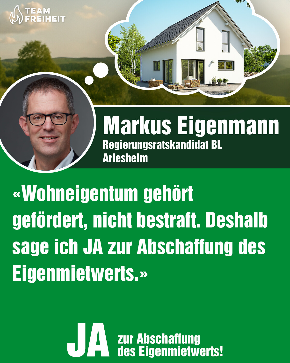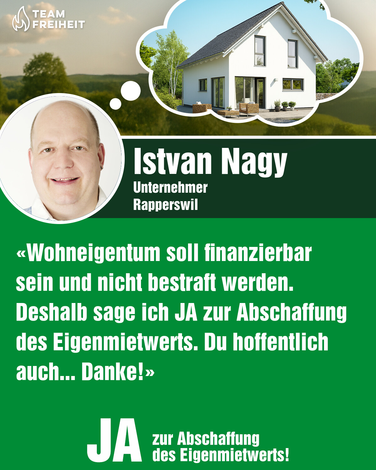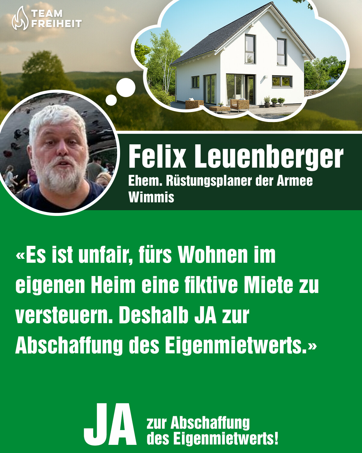 ««Wohneigentum soll finanzierbar sein und nicht bestraft werden. Deshalb sage ich JA zur Abschaffung des Eigenmietwerts. Du hoffentlich auch... Danke!»»